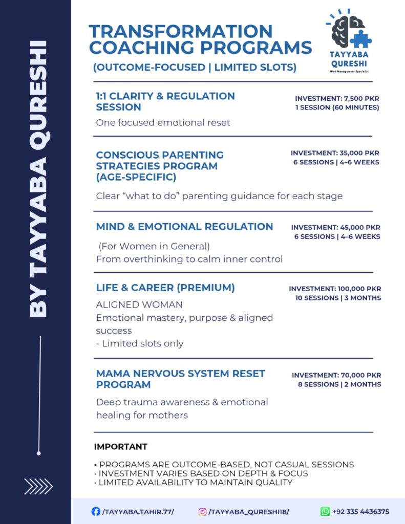 I took goal-oriented journey sessions with Miss Tayyaba, and they proved to be a true game changer for me. Within just one month, I noticed clear change most notably a shift in my thinking patterns and the ability to break free from destructive, repetitive mental loops. I feel happier, more content, more confident, and braver than ever before.